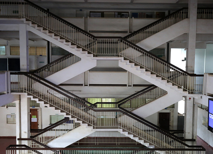 外語樓別具特色的設計,能夠有效分流人群,防止擁堵和踩踏事件
