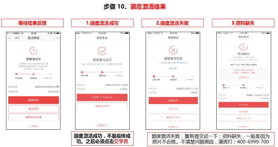 步驟 8、額度申請出結(jié)果,激活額度