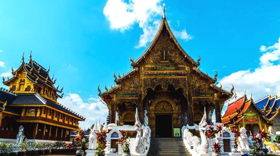 而從外觀看,泰國(guó)的建筑又明顯受到宗教的影響。一座座建筑如同宮殿一般,輝煌神秘。