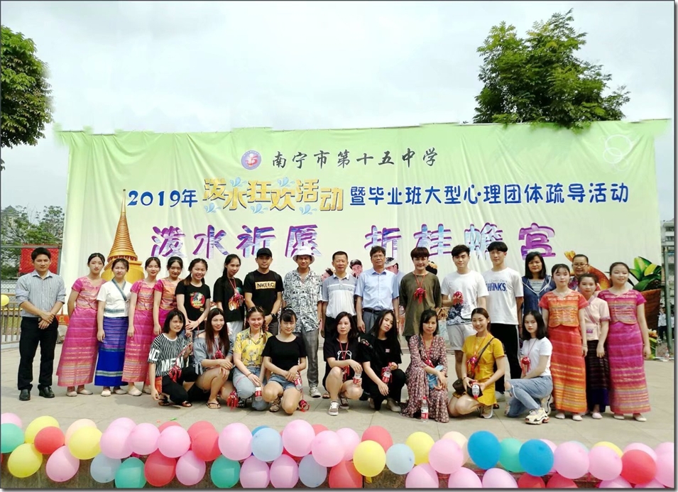 活動(dòng)開始,高三學(xué)子進(jìn)行“游龍翻身”的游戲,取“游龍翻身取金榜,十五中學(xué)我最棒”的含義。接下來身著東盟各國(guó)傳統(tǒng)服飾的學(xué)生為大家獻(xiàn)上了優(yōu)美的東盟國(guó)家舞蹈,展現(xiàn)了東盟各國(guó)的傳統(tǒng)舞蹈的魅力。隨后由學(xué)校校長(zhǎng)帶隊(duì),各年級(jí)老師共同參與,手持水瓢,將滿載祝福的水輕灑向所有高三學(xué)子,拉開了潑水狂歡的序幕。伴隨著歡快的音樂,潑水狂歡將本次活動(dòng)帶向高潮,大家積極參與,手持水盆、小桶、水槍,你追我趕,相互潑灑,傳遞著著祝福與歡樂。以多種形式將各國(guó)文化風(fēng)情融入學(xué)生的心理教育中。