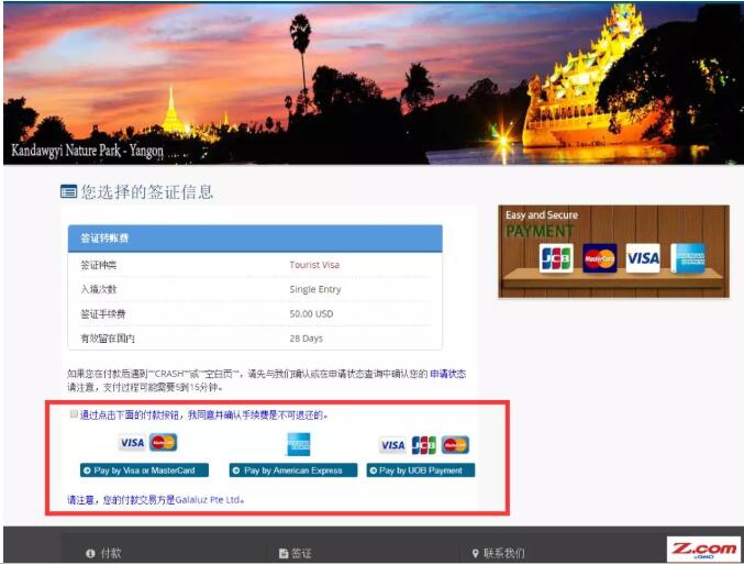 簽證費(fèi)支付頁(yè)面;如何支付,不解釋;這個(gè)也不會(huì)的話,就找東南亞e生活代辦吧~