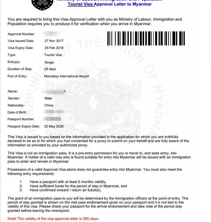 完成 緬甸簽證