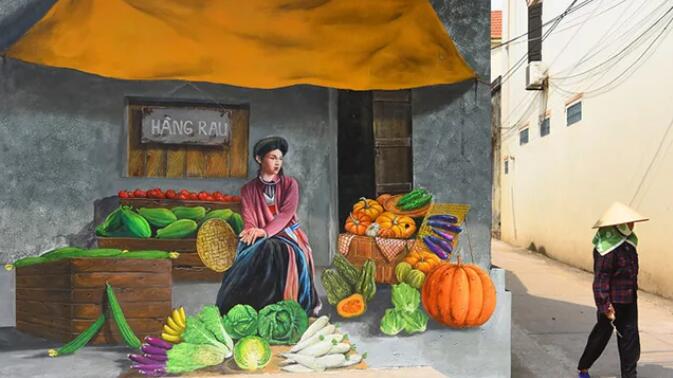 繼廣南省三清鄉(xiāng)和廣平省景陽村等壁畫村的問世后,現(xiàn)在在離河內(nèi)市中心20公里就有一個多彩繽紛的壁畫村,那就是嘉林縣文德鄉(xiāng)褚舍村。