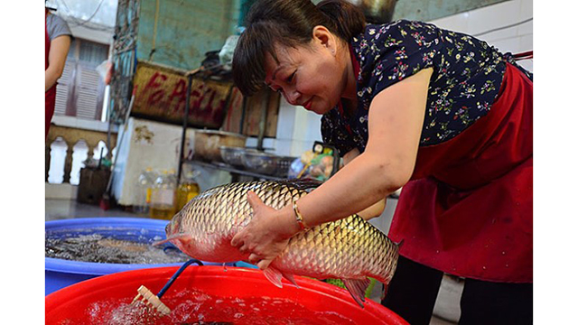 范氏青恒女士抓魚(yú)準(zhǔn)備做紅燒。