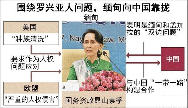 一方面,歐美也支持多年來致力于民主化運動的昂山素季政權(quán),期待緬甸深化民主和經(jīng)濟開放,這一立場沒有改變。羅興亞人問題是人道主義危機,同時牽涉到地緣政治利害關(guān)系,正日益復(fù)雜化。