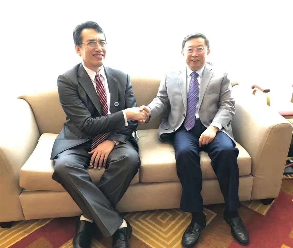2018年8月,許寧寧與老撾工商會會長交談。