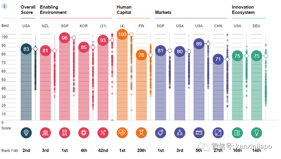 今年,世界經(jīng)濟(jì)論壇對(duì)評(píng)分進(jìn)行了大幅調(diào)整,把未來技術(shù)驅(qū)動(dòng)的經(jīng)濟(jì)成長(zhǎng)作為導(dǎo)向,加入了多項(xiàng)新指標(biāo),從創(chuàng)新能力、開放性和靈活性等12項(xiàng)類別的98個(gè)要素進(jìn)行綜合考察。