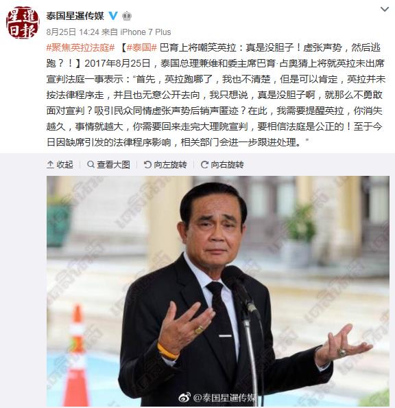 巴育嘲笑:真是沒膽子!