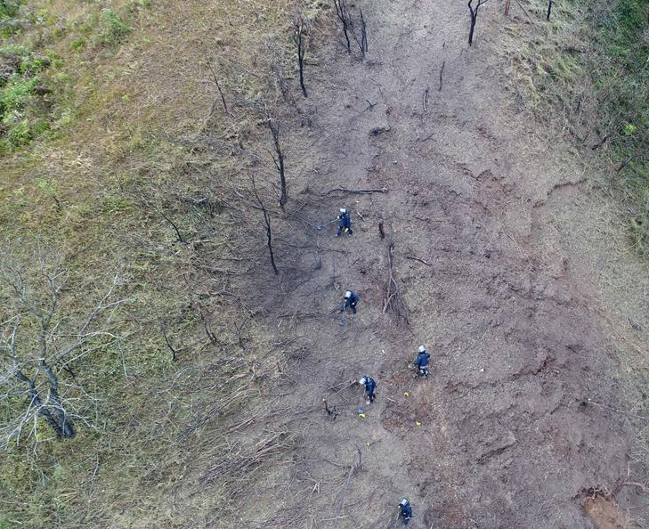 掃雷官兵在中越邊境廣西段某雷場(chǎng)搜排地雷